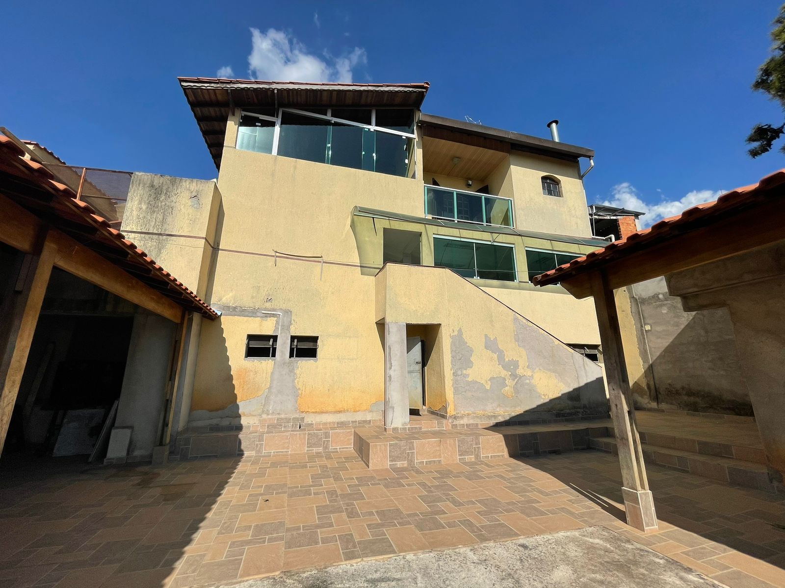 salão de festas com (150m2) churrasqueira, 2 banheiros, mais garagem para 6 veículos + outra área de lazer com cozinha, banheiro, área coberta e pomar e mais 2 porões grandes parte inferior.