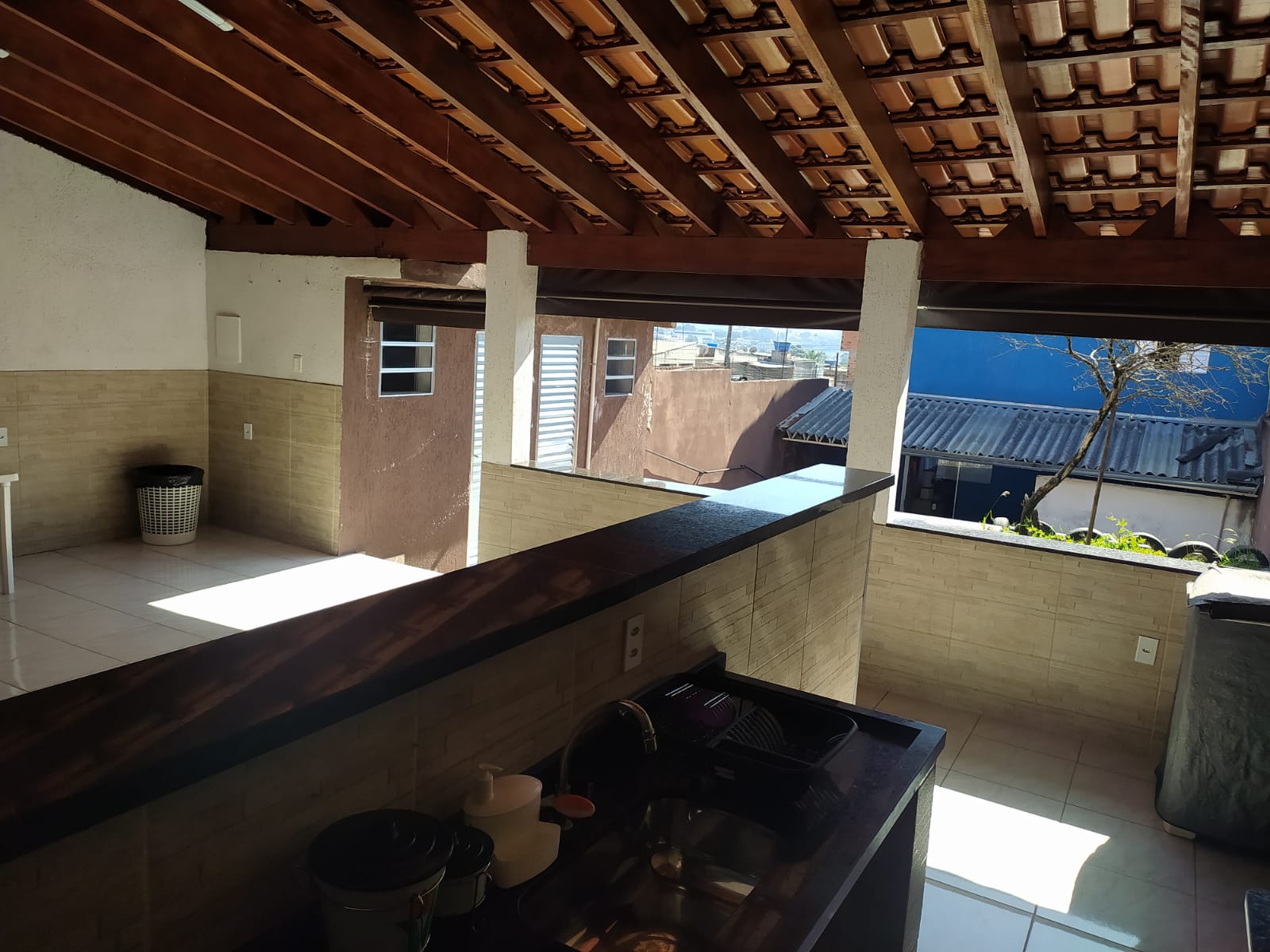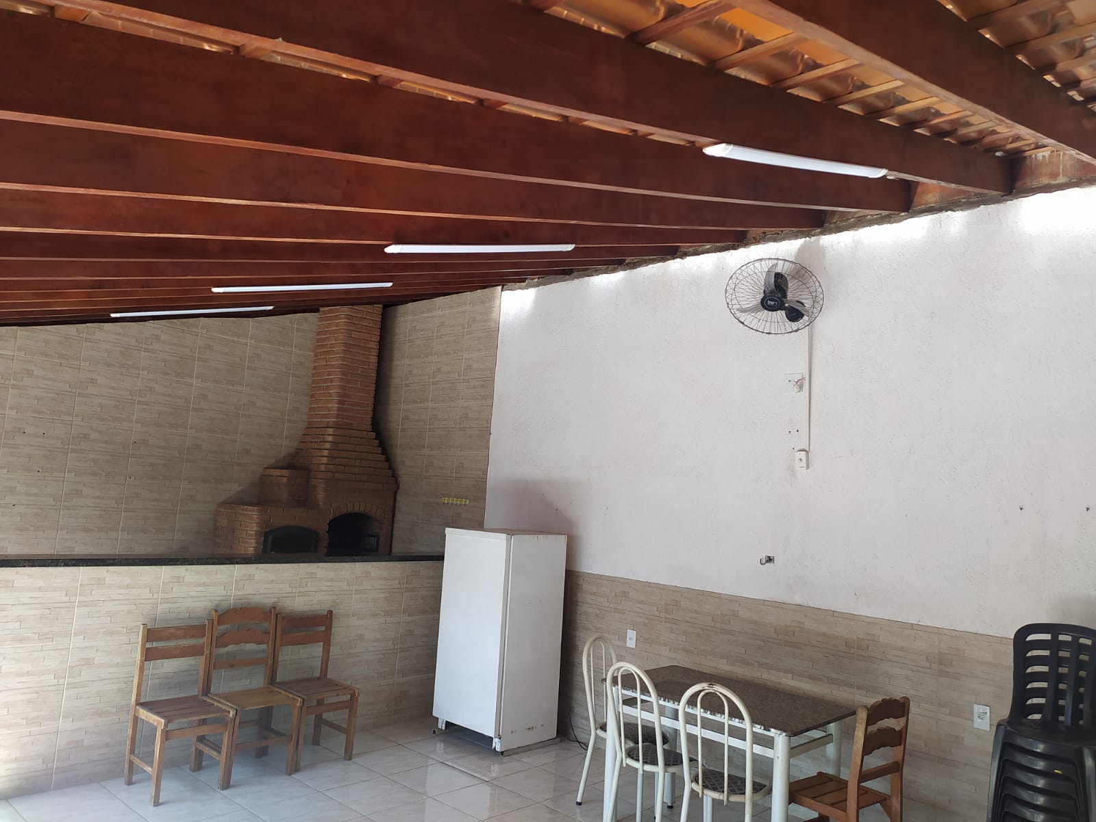 Casa com Sala de Estar, Sala de Jantar, cozinha Planejada, dispensa, Edícula com Churrasqueira, forno de pizza e fogão.