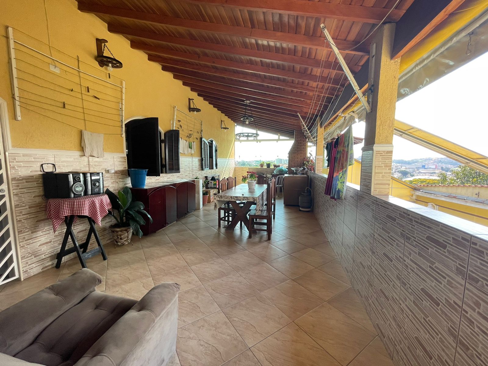 salão de festas com (150m2) churrasqueira, 2 banheiros, mais garagem para 6 veículos + outra área de lazer com cozinha, banheiro, área coberta e pomar e mais 2 porões grandes parte inferior.