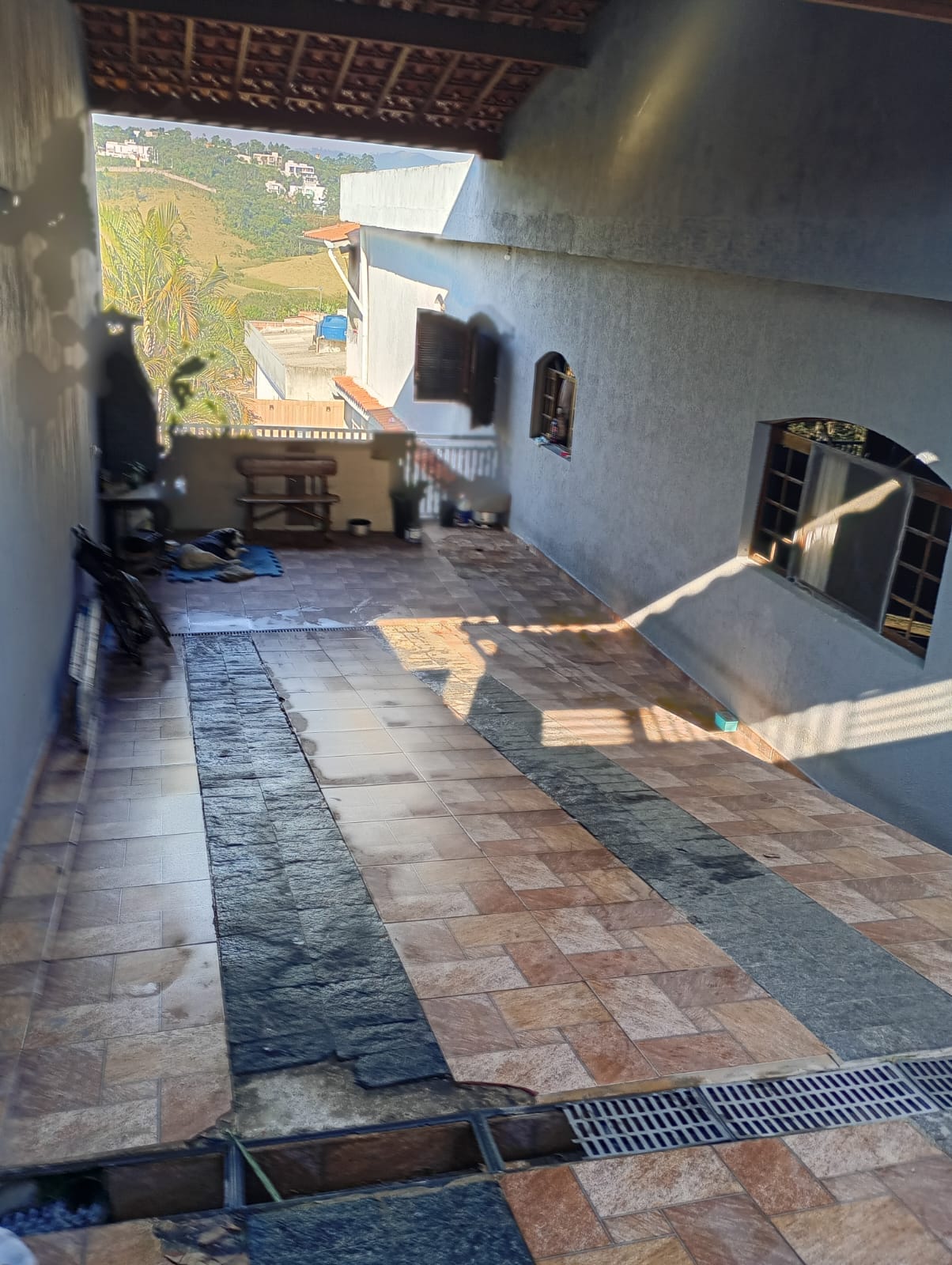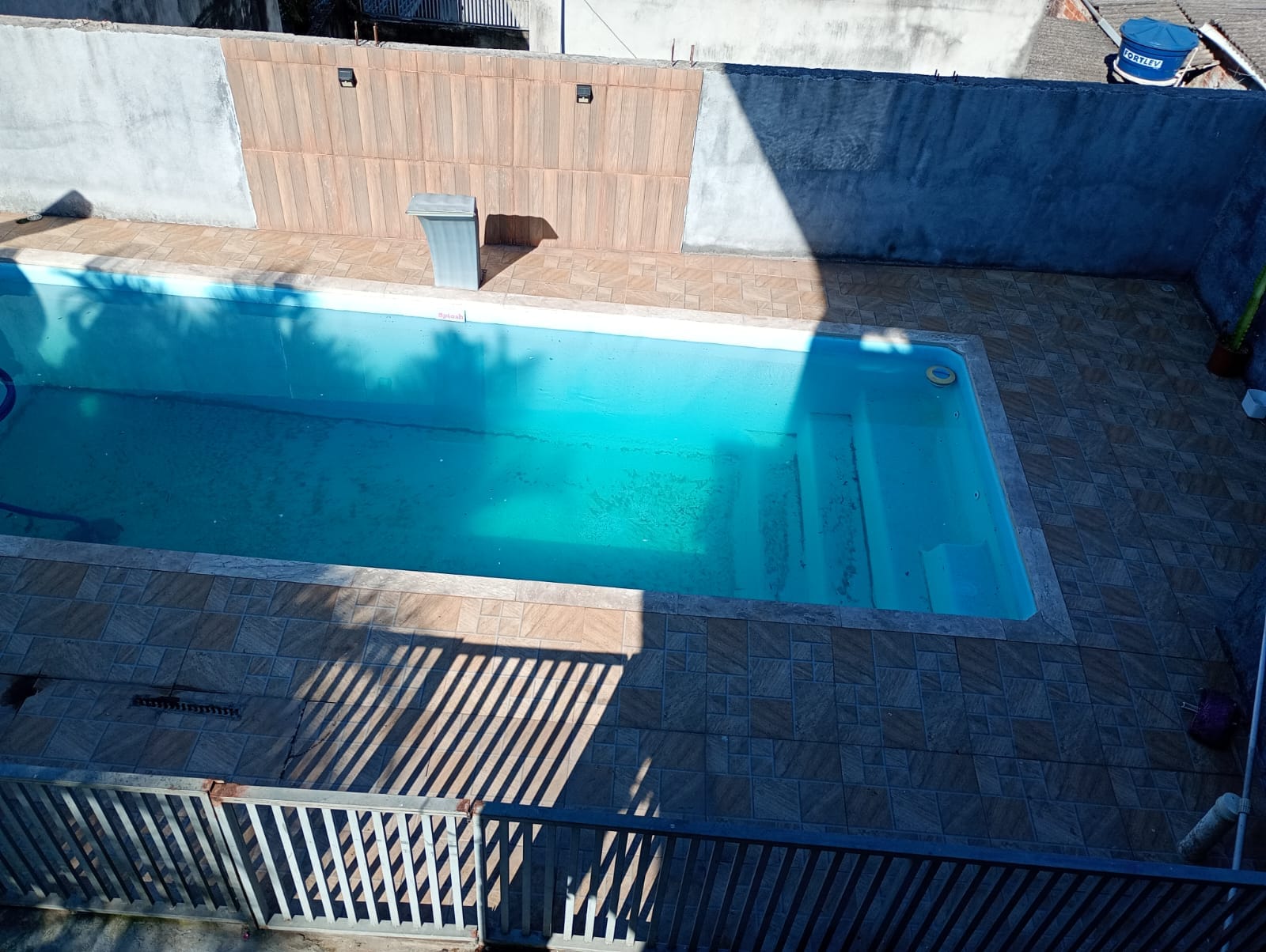 Terreno de 250m2, área construída 154m2, com piscina e churrasqueira, banheiro com jardim de inverno.