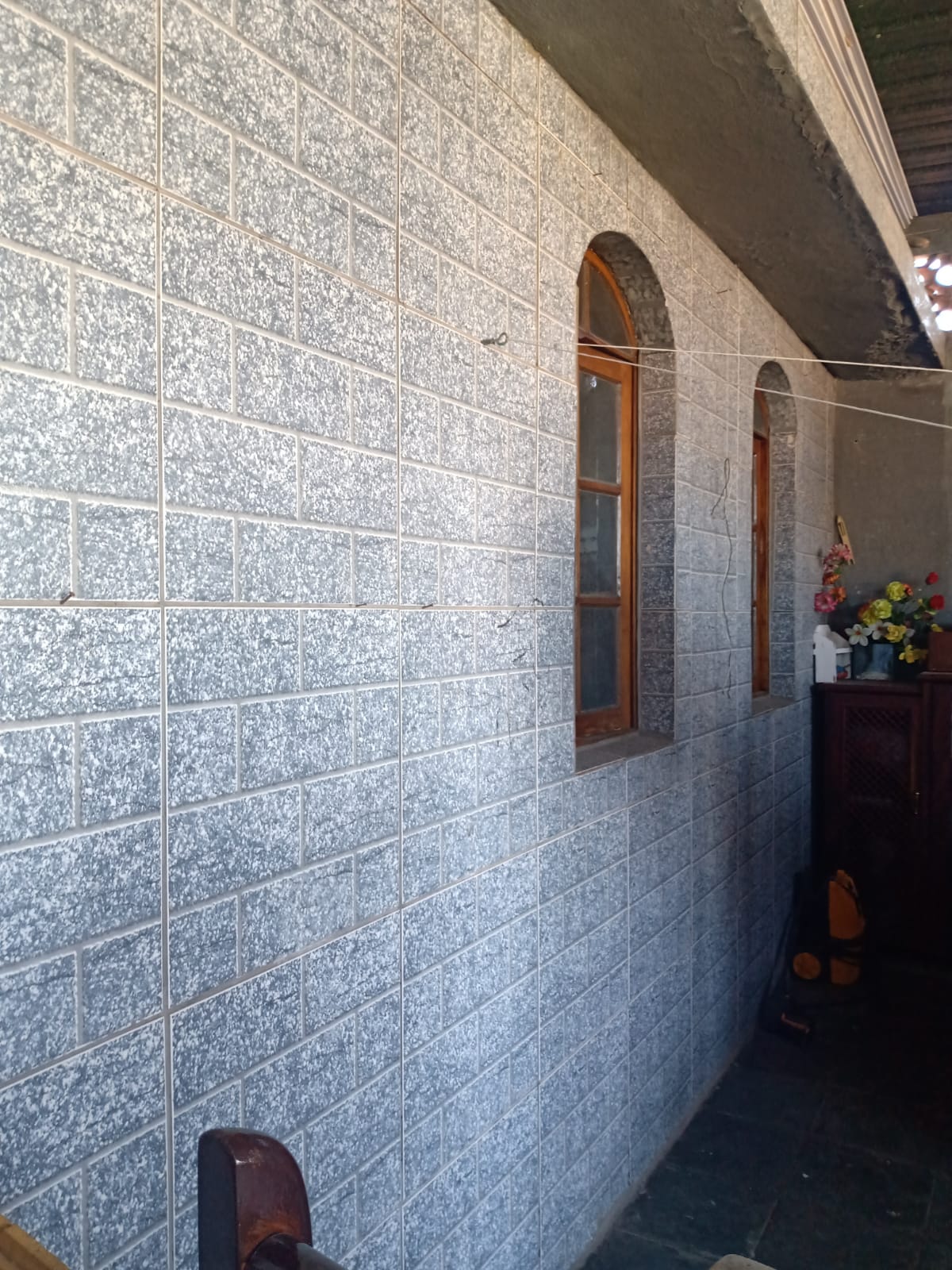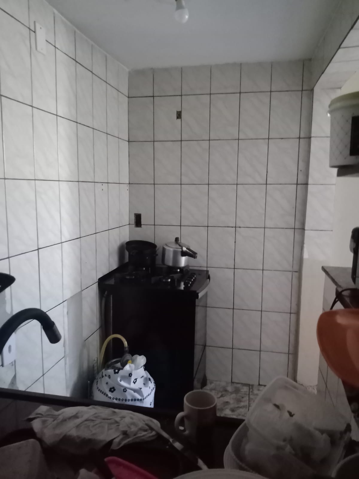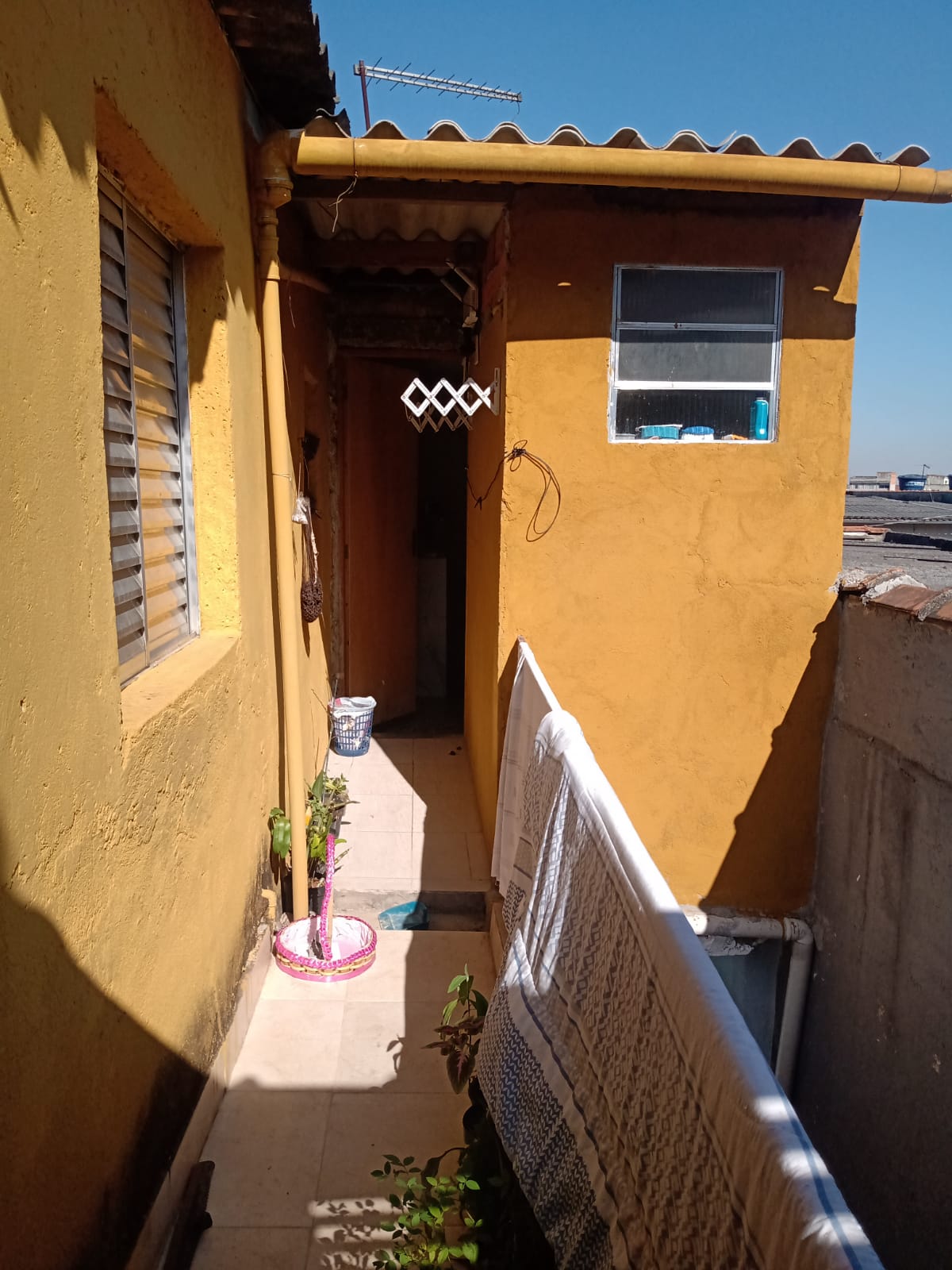 Casa parte de cima: 2 quartos + sala + cozinha e banheiro.