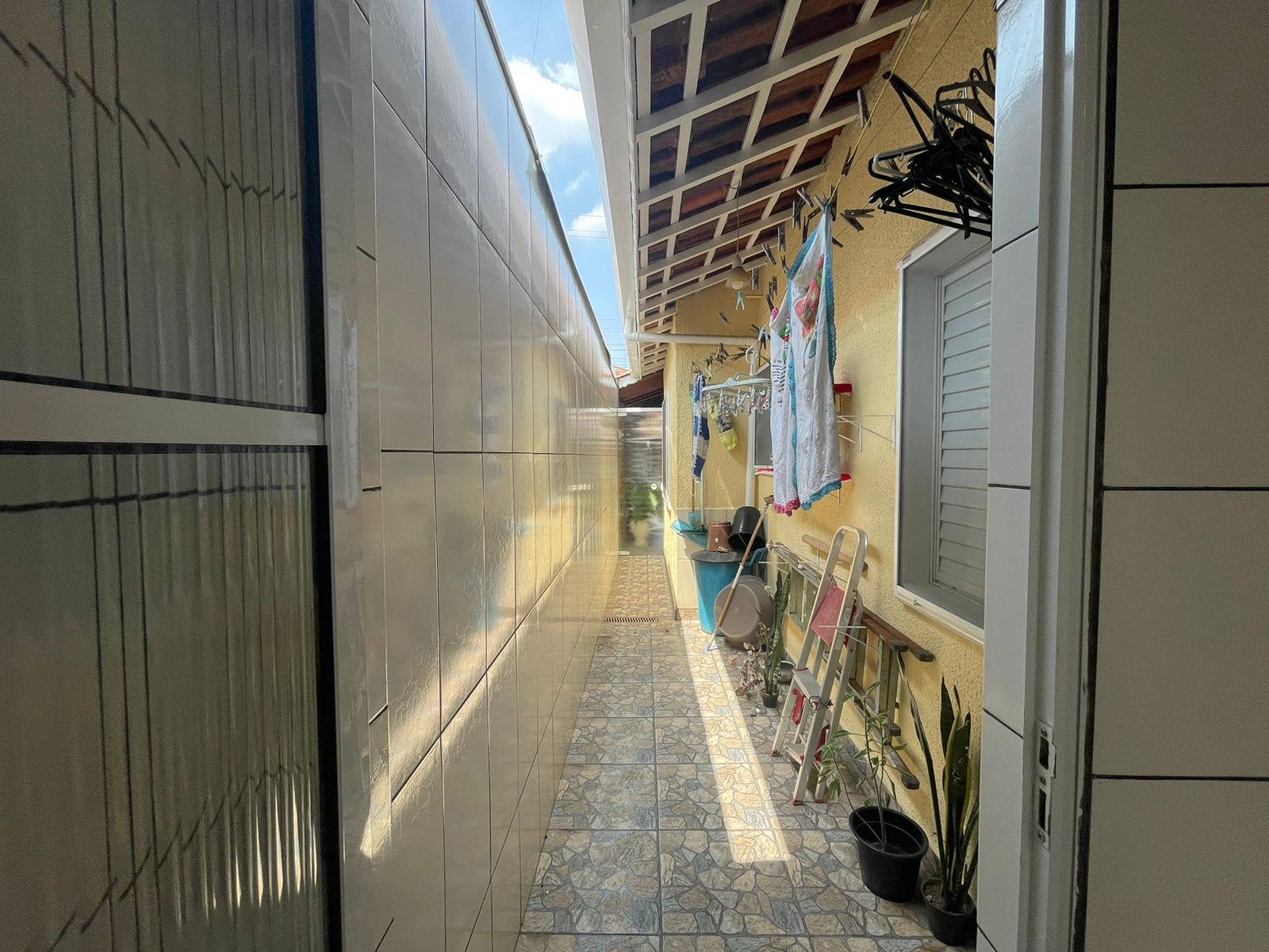 Casa com garagem coberta para 2 carros, 1 Sala, 2 Quartos, 1 Suíte, 1 Banheiro, 1 Cozinha americana, 1 Lavanderia coberta, corredor externo com entrada separada.